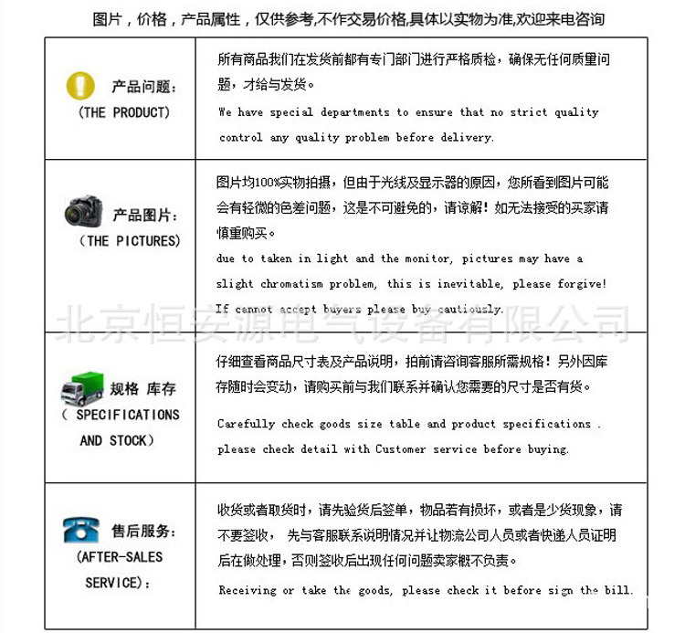 1.我公司對生產的全部產品實行“三包”,保證產品采用較佳材料和一流工藝,符合合同規定的質量﹑規定和性能要求。保證其合同設備經過正確安裝﹑合理操作和維護保養,在合同設備使用期內運轉良好,在規定的質量保證期內,對由于設計工藝或材料的缺陷而造成的故障負責,免費負責修理或更換有缺陷的電器元件。