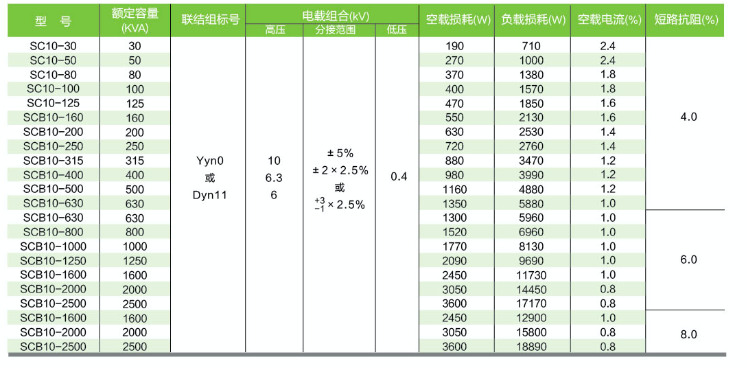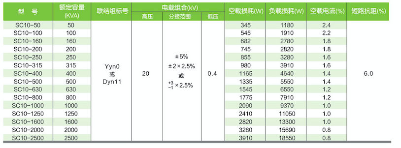 SC(B)10型20kv主要性能參數:
