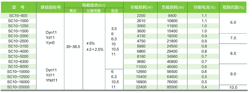 SC(B)10型35kv主要性能參數:
