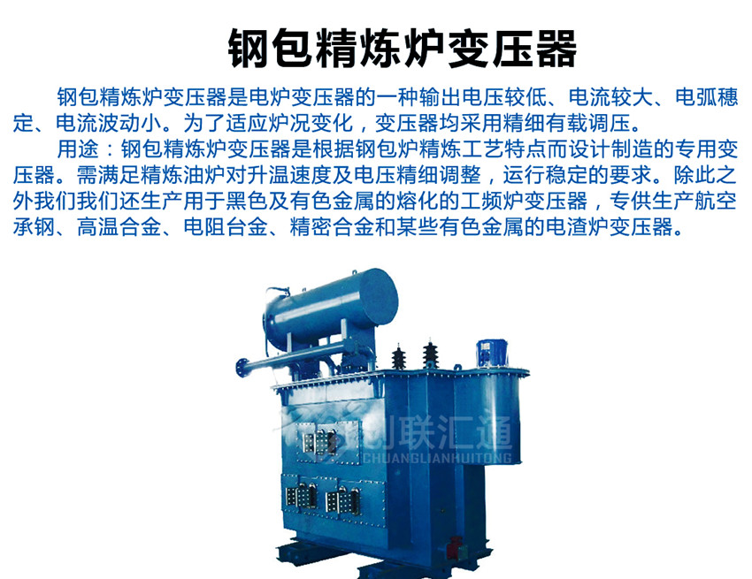 鋼包精煉爐變壓器是電爐變壓器的一種輸出電壓較低、電流較大、電弧穗定、電流波動小。為了適應(yīng)爐況變化,變壓器均采用精細(xì)有載調(diào)壓。